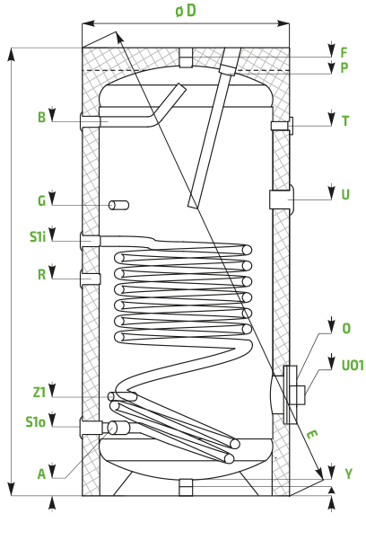 Zbiorniki emaliowane typu ZE1 LUX wyposażone są w wymiennik ciepła w postaci jednej wężownicy o dużej powierzchni wymiany i pojemności, dzięki czemu następuje szybka wymiana ciepła oraz szybkie podgrzanie wody użytkowej.